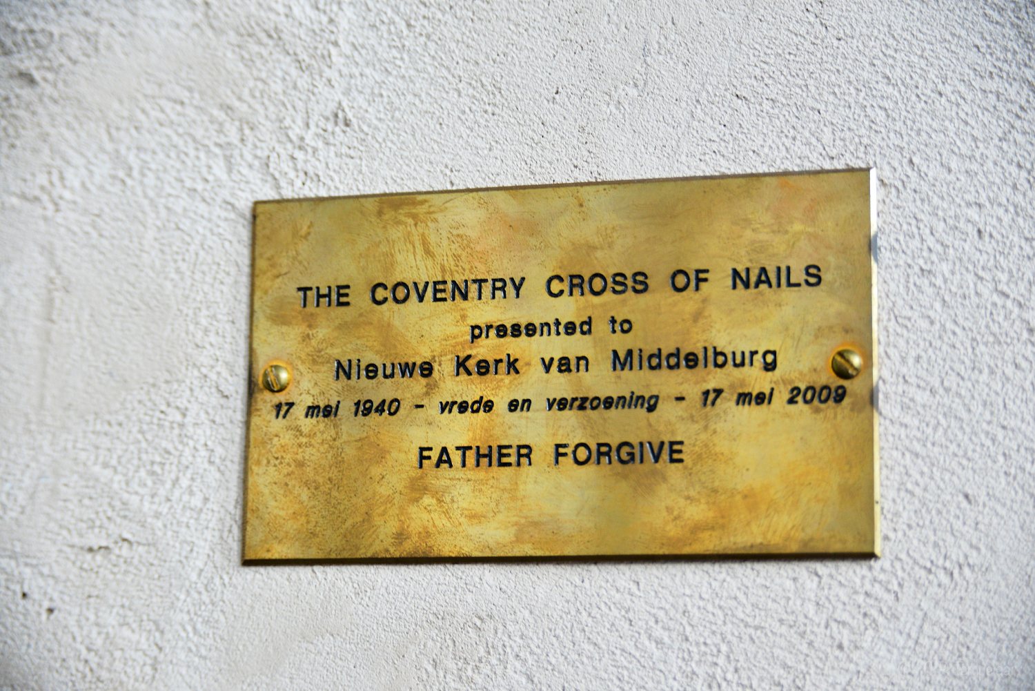 In de Nieuwe Kerk bevindt zich aan de zuidelijke muur een bijzonder monument. Het is een klein kruis gevormd door drie samengebonden grote middeleeuwse spijkers geplaatst op een stuk steen. Het is er bevestigd op zondag 17 mei 2009, precies 69 jaar nadat de Nieuwe Kerk en een groot deel van het centrum van Middelburg werden verwoest door oorlogsgeweld.