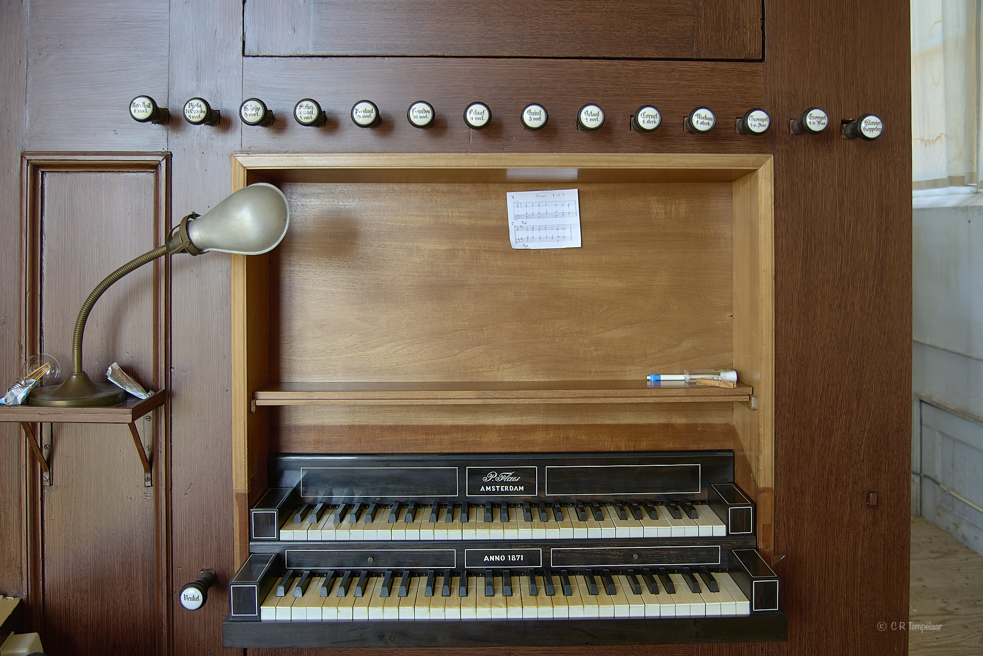 Tenslotte togen we naar Zonnemaire waar de neogotische Dorpskerk, daterend uit 1868 als opvolger van een in 1866 afgebroken kerk uit 1445 gewijd aan Beate Maria de Dolore, open stond en het orgel voor ons beschikbaar was. Ook hier een mooi historisch orgel, in 1871 voor deze kerk gebouwd door de Amsterdamse orgelbouwer P. Flaes. Het heeft 2 klavieren, een aangehangen pedaal en 12 stemmen.