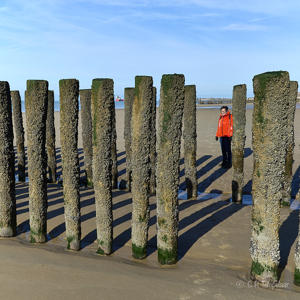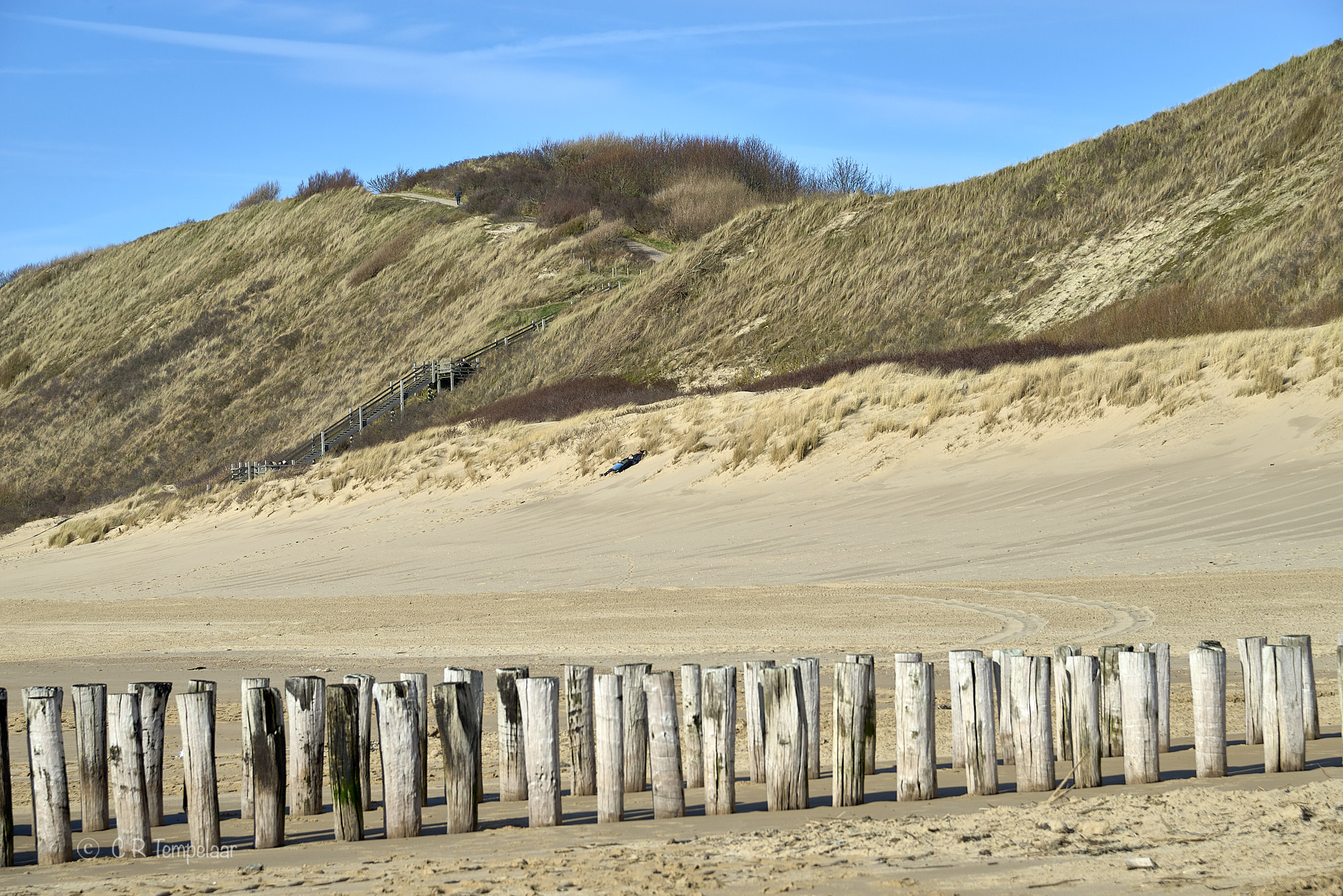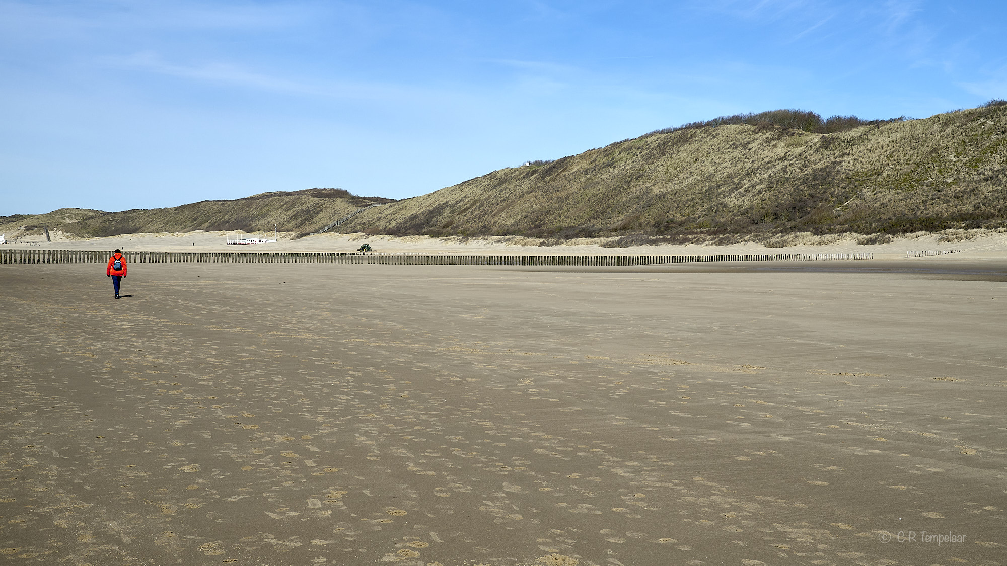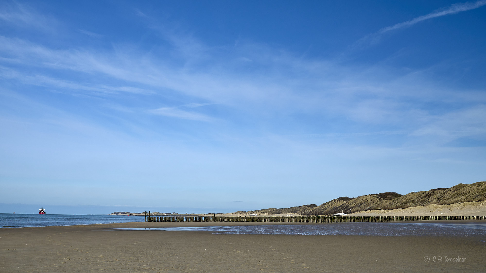 Maar gisteren was anders. Het was een stralende zonnige dag, een matig windje uit het noordoosten en de verjaardag van mijn lief, 76 lentes telt ze nu. Omdat we dat zondag al hadden gevierd met familie konden we van deze een dag lang durende opklaring buiten gaan genieten. Om een uur of 11 reden we naar Dishoek om van daar over het strand naar Zoutelande te wandelen. Het was laag water en het strand lag eindeloos breed voor de imponerend hoge duinen. En gelukkig was er aan de voet van de duinen nog niet de afgrijselijke rij met hokjes die hier over een poosje weer worden opgesteld. Die verknoeien het beeld van deze prachtige natuur. Het was stil op het strand, slechts hier en daar liepen wat mensen, soms met hun hond, af en toe kwam er een zeeschip voorbij. Op het gemak lopend langs de waterlijn zag ik plots een vrouw die deed alsof het al wel lente was. Ze liep in haar bikini zonder dralen het water in en bleef daar een poosje rondhangen. Ik heb het thuis even nagekeken: de watertemperatuur is nog geen 8ᵒ. Dit was nog eens wat anders dan een Nieuwjaarsduik van 10 seconden, ze nam echt een bad. Ik voelde me comfortabel in mijn winterjack met mijn mutsje op. Ieder zijn genoegen. Na zo’n 5 kwartier wandelen kwamen we in Zoutelande aan voor een lunch bij De Babbel. Op het beschutte terras was het in de zon zo lekker dat de jassen uit gingen. Zo kregen we toch ook wel een lentegevoel. De wandeling terug was ook een feestje. De zon bleef schijnen, er waren hooguit wat lichte sluierwolken die geen afbreuk deden aan het zonnige karakter van deze dag. Onderweg zagen we zelfs mensen aan de voet van de duinen in het zonnetje liggen, ook al alsof het toch al lente was, misschien voorgenietend van hoe het in de zomer zal zijn. Alleen kan dat dan niet daar want dan staan die hokjes er. Of misschien lagen ze op de plek waar hun hokje zou komen te staan. Het was in ieder geval een leuk gezicht. Na weer zo’n 5 kwartier wandelen en slenteren langs het snel opkomende water met aan het eind nog over de dubbele duinenrij kwamen we weer op de parkeerplaats bij Dishoek.