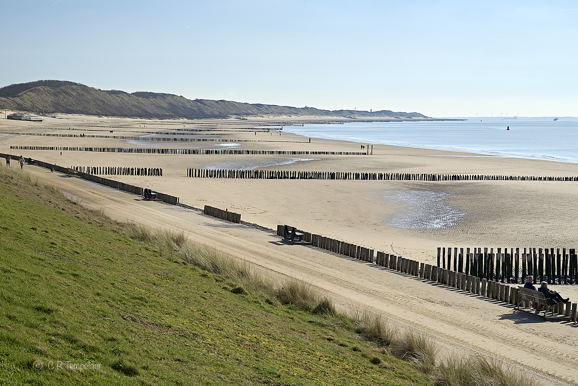 Vanaf de dijk bij Zoutelande heb je zicht op wat wordt genoemd de Zeeuwse Riviera