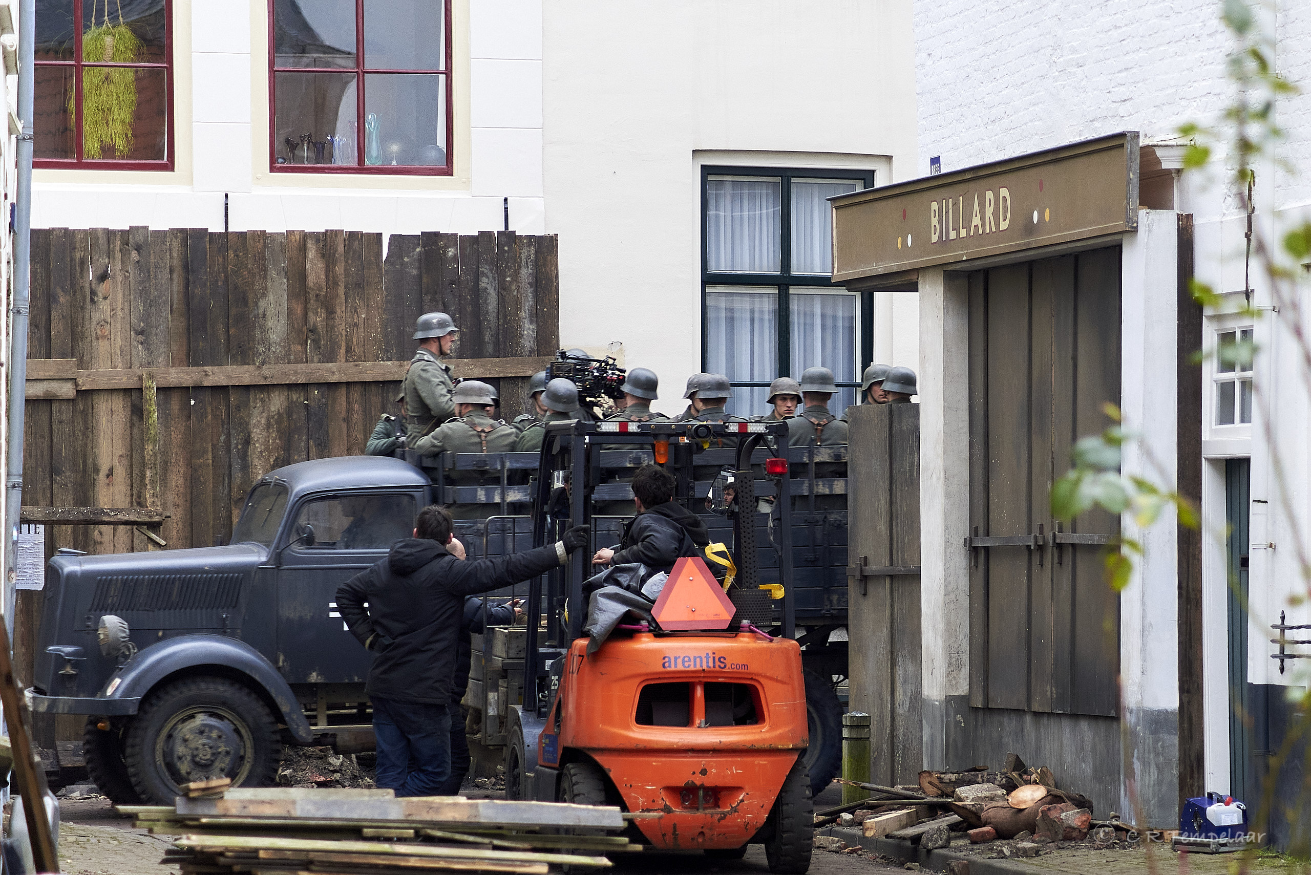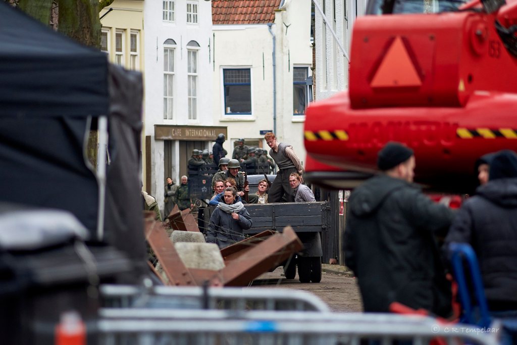 De opnamen vonden plaats op het Hofplein, waar het Van de Perrehuis fungeerde als hoofdkwartier van de Duitsers. Vol bewondering keek ik naar wat er allemaal komt kijken voor het opnemen van zo’n film op lokatie. En er was het onbehaaglijke gevoel om militairen in de zo bekende uniformen ‘van de vijand’ door de eigen stad te zien lopen en rijden.