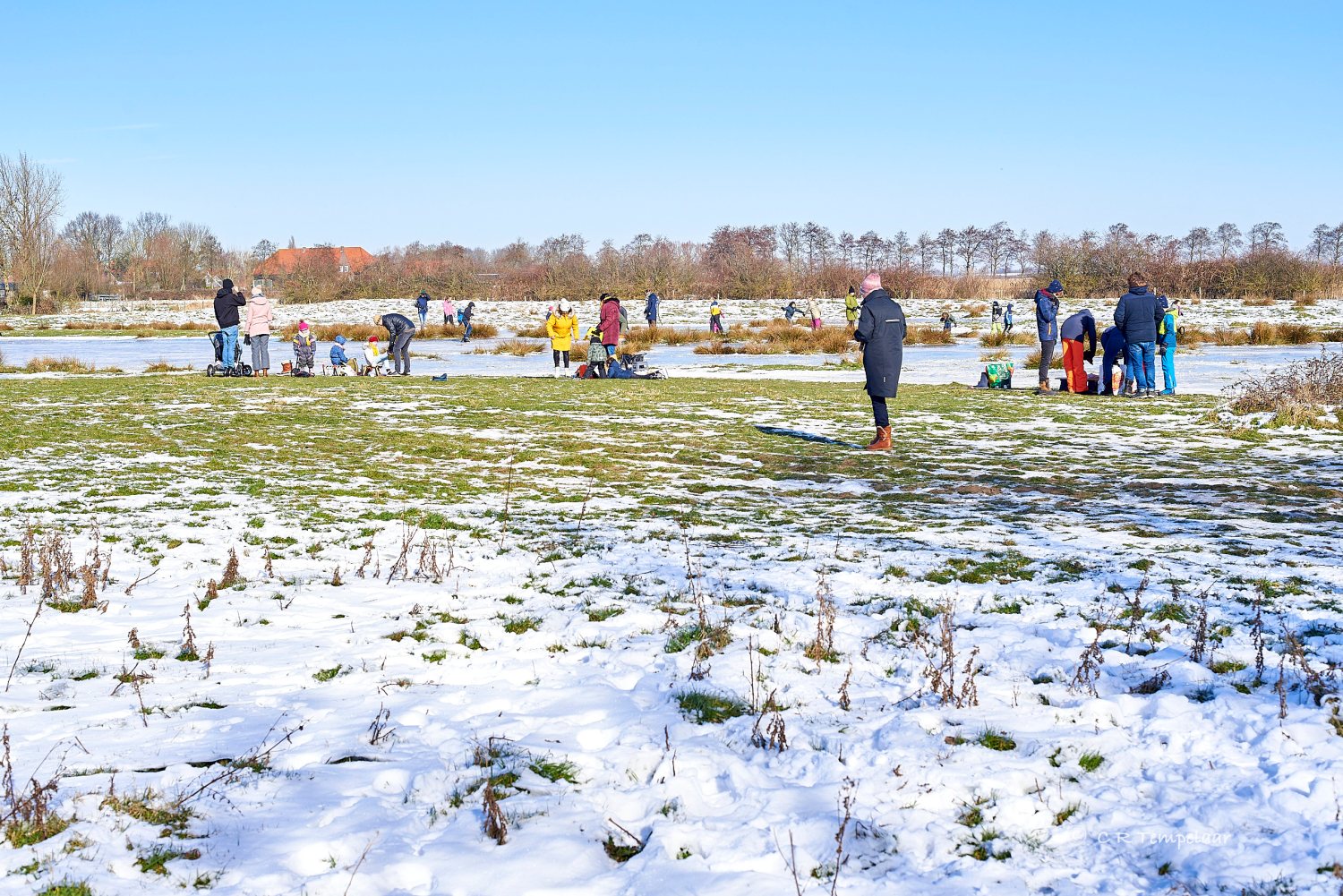 Dus was het ondanks de gure wind lekker wandelen in het zonnige winterse landschap, naar het Brigdamsepad of een ander ommetje dat met onze huidige conditie goed te doen is. Op en langs het pad waren opvallend veel vogeltjes, heen en weer vliegend tussen het riet en de braamstruiken. En vandaag gingen we ook het poelgebied in waar inderdaad geschaatst kon worden. Het is altijd een genoegen om daarnaar te kijken. Schaatspret op vijvers en sloten heeft een aparte, eigen sfeer waar je mee opgroeit en altijd van kunt genieten. Zelf heb ik evenwel geen kriebels meer om mijn noren uit de doos te halen. In het journaal zag ik beelden van schaatsers bij de molens van Kinderdijk en dat deed de herinnering terugkomen aan de Molentocht die ik ooit in de Alblasserwaard gereden heb. Dat was mooi.
