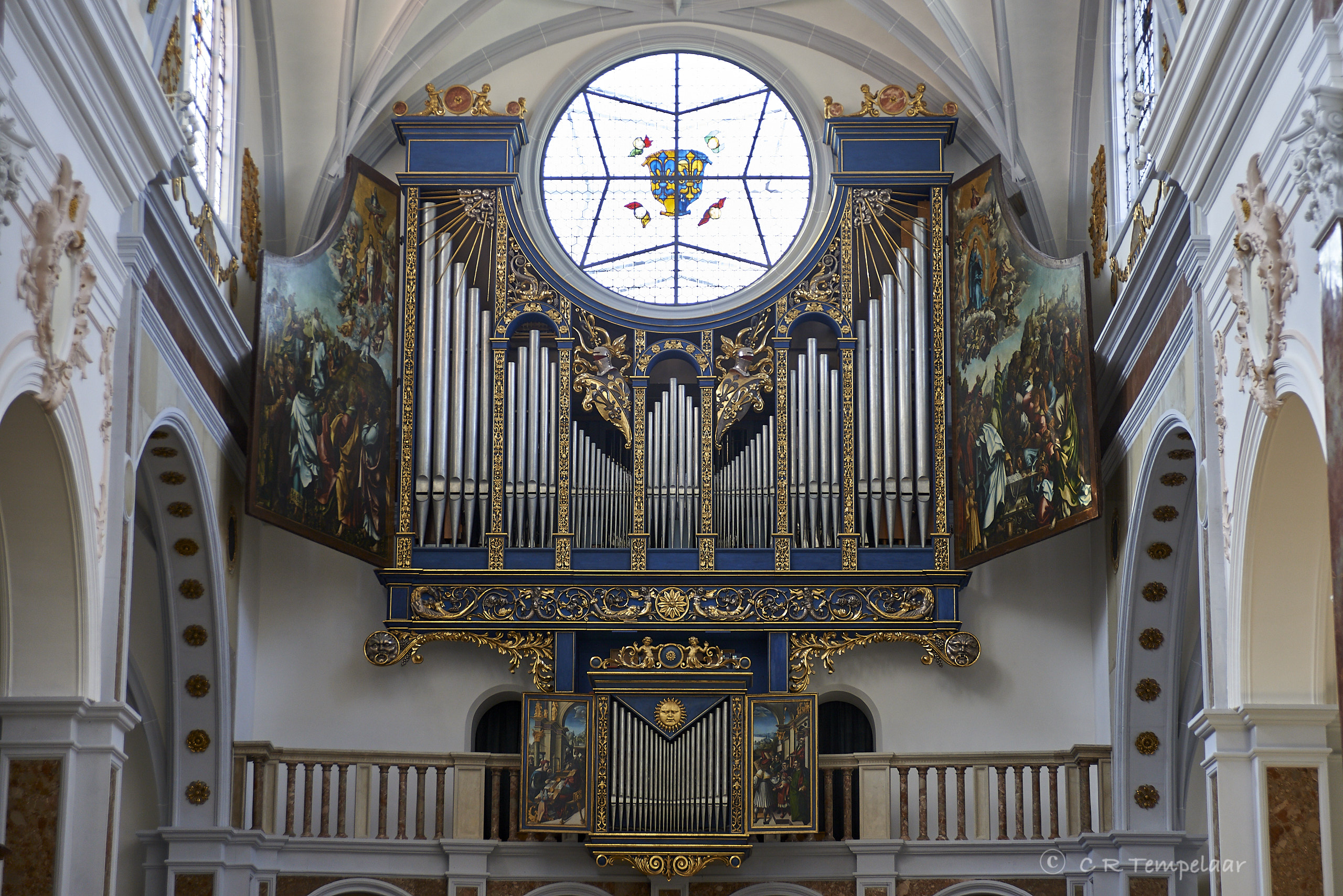 Augsburg, Hohe Domkirche Sankt Maria, Marienorgel Franz März 1904, II/P/36 voorzijdeAugsburg, Hohe Domkirche Sankt Maria, Marienorgel Franz März 1904, II/P/36 achterzijdeAugsburg, Kirche St Anna, orgel oorspronkelijk uit 1512, in 1944 verbrand bij bombardement, 1977/78 gereconstrueerd. Renaissance kas, III/P/45