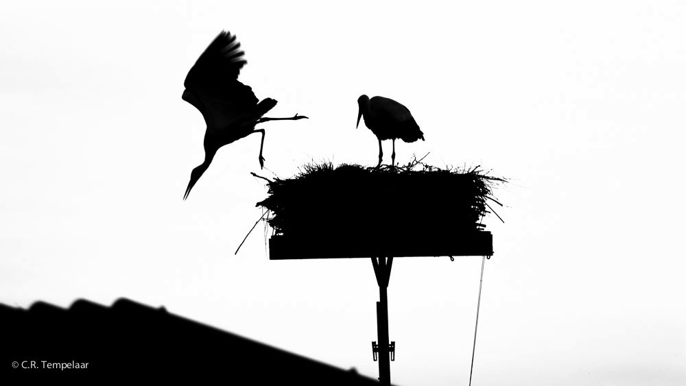 De eerste verblijfplaats was in de Alblasserwaard. Op een ’boerencamping’ in de buurtschap Broek bij Meerkerk stonden we een week in het mooie polderlandschap met sloten en knotwilgen en zicht op een ooievaarsnest, waarvan de bewoners druk waren met broeden en nestbouw.